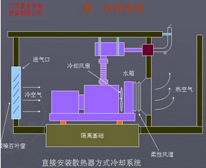 1.進風口宜設定在發電機端或發電機兩側,面積應大于水箱面積2.2倍。